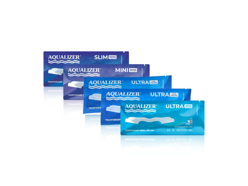 3 modely Aqualizer® - Aqualizer® Ultra (nejprodávanější a nejoblíbenější dlaha pro úlevu, diagnostiku a léčbu TMK), Aqualizer® Mini (pro dospívající a dospělé s menšími ústy), Aqualizer® Slim (štíhlejší tvar, vhodný pro citlivější pacienty).