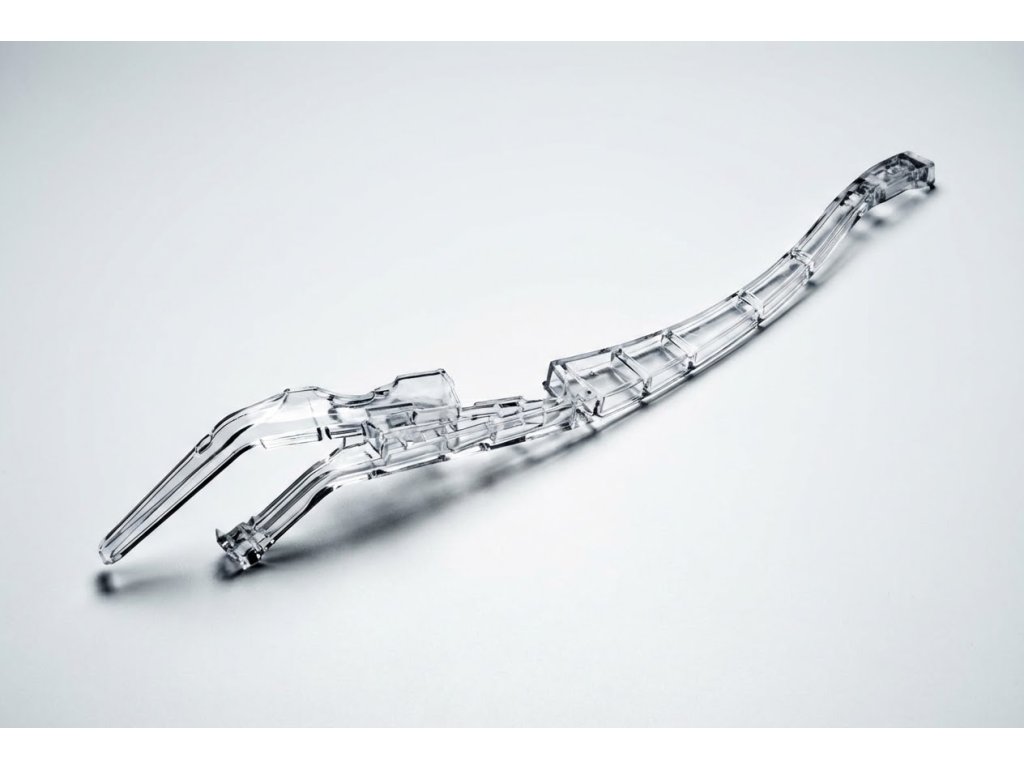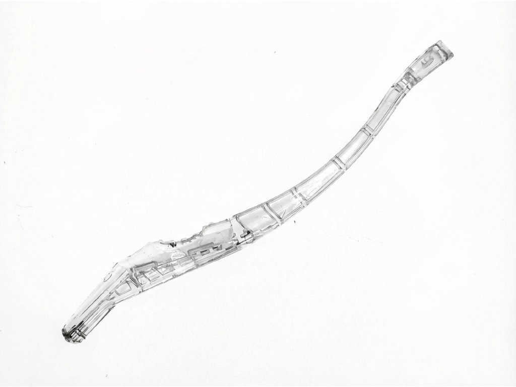 - Přední část je ohnutá tak, aby byl boční přístup do ústní dutiny snadný.
