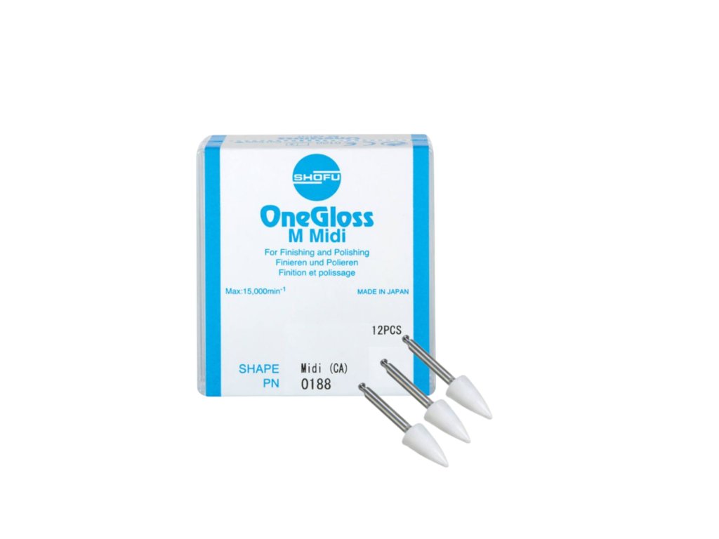 - Použití OneGloss pro: kompozita, dočasné korunky, k odstraňování ortodontických cementů a k odstraňování skvrn ze skloviny.