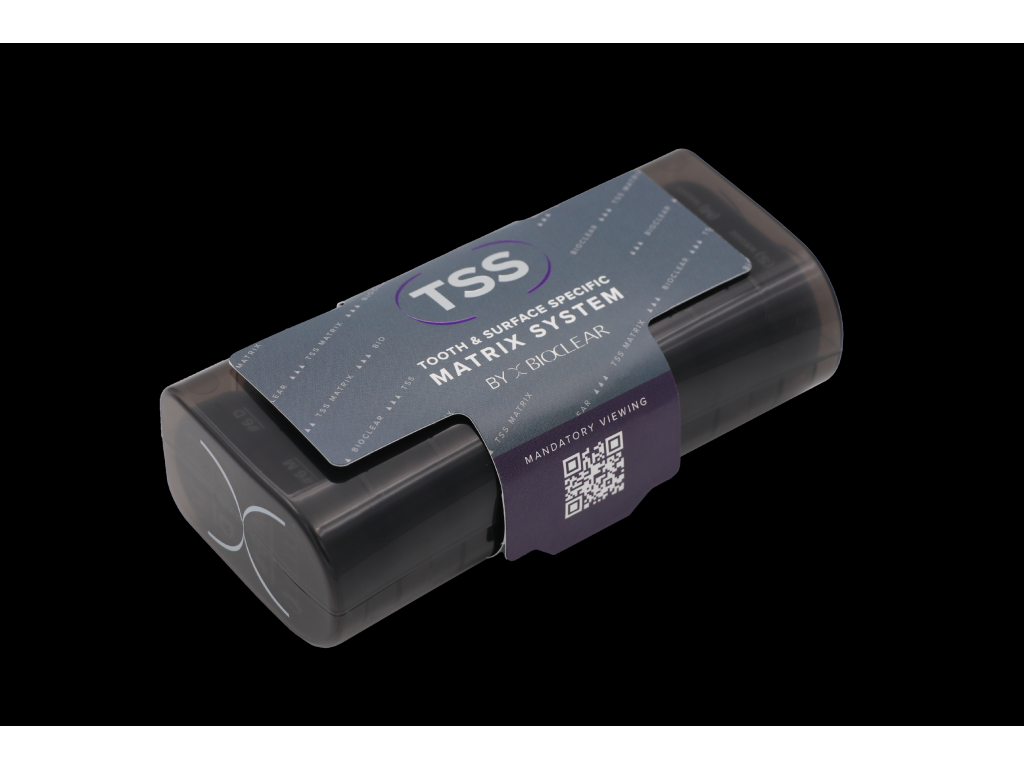 Sada Tooth & Surface Specific (TSS) Kit je pokročilý systém frontálních matric navržený tak, aby pomáhal zubařům přesně a efektivně provádět rekonstrukce na předních zubech. Jeho patentovaná technologie obličejového alingválního překrytí poskytuje vynikající přizpůsobení a kontury pro přirozenější a estetičtější výsledky.